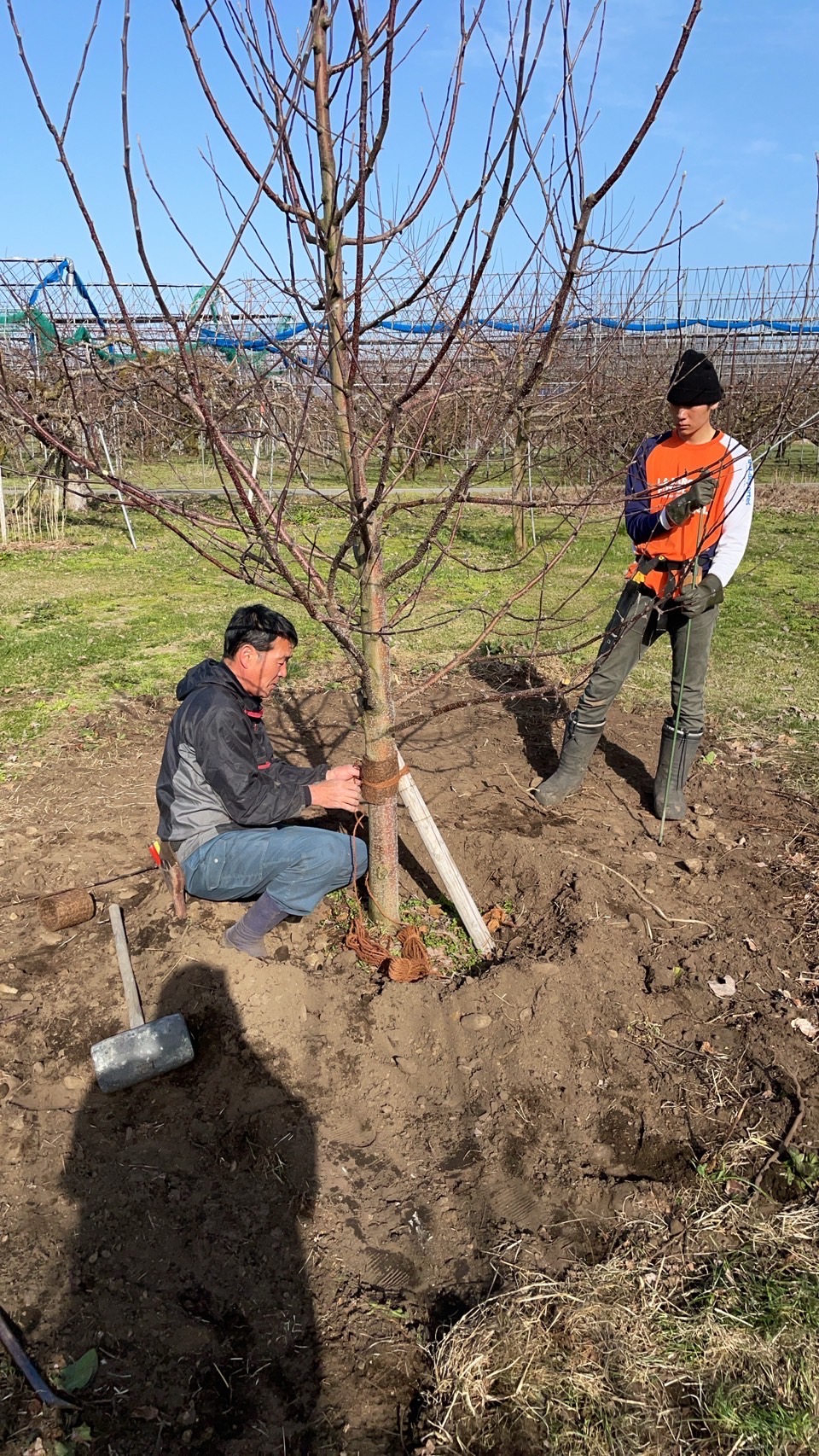 山形の豊かな大地に、新しい命を吹き込みます。数年先の収穫を願い、一本ずつ手植えしていきます。