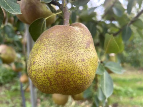 ずんぐり、ゴツゴツとした果形で見た目は決してよくありません。追熟が難しく食べごろがわかりずらい西洋梨です。王将果樹園では収穫後、一定期間冷蔵庫に入れ追熟期をそろえてから出荷しています。